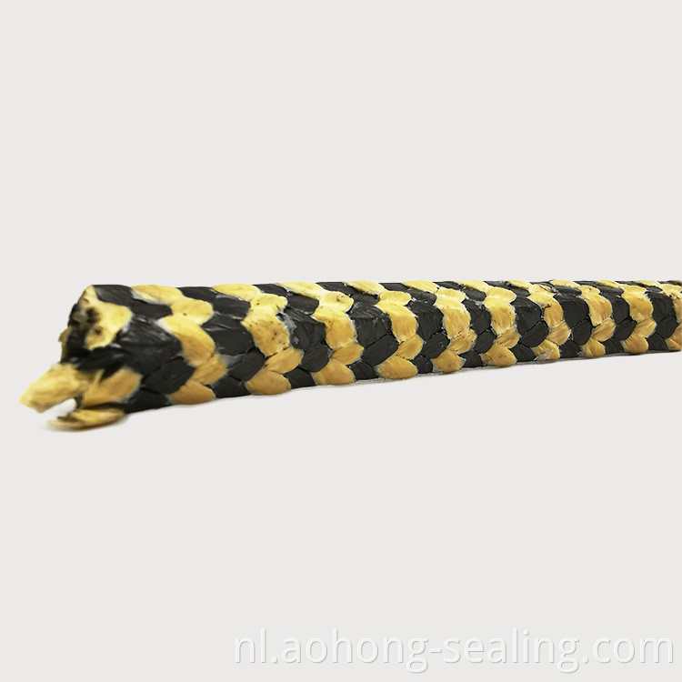 De aramidepakking vergeleken met andere soorten gevlochten pakkingen kan weerstand bieden aan meer ernstige media en hogere druk. Het kan afzonderlijk worden geïnstalleerd of als eindringen met andere soorten pakking om verschillende kenmerken te combineren in afdichtingsringafdichting van de afdichtingen.