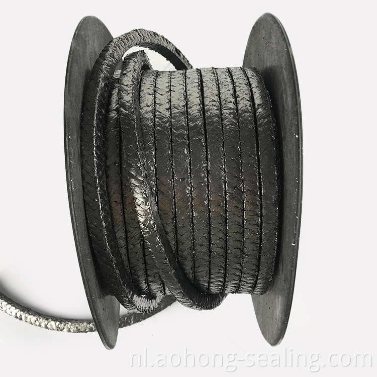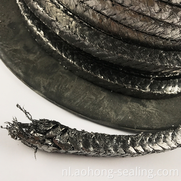 Gevlochten van lage SULPHUREXPANDE GRAFICITE-garens, die wordt versterkt door katoen- of glasvezel. Het heeft een zeer lage wrijving, beschadigt geen schachten of stengels. Het toont een goede thermische en chemische reistantie en hoge elasticiteit. kan glazen vezels, nikkeltraad, koper zoals verbeterd bieden. Kan gebruiken met kartonverpakking anti-extrusiepakringen.