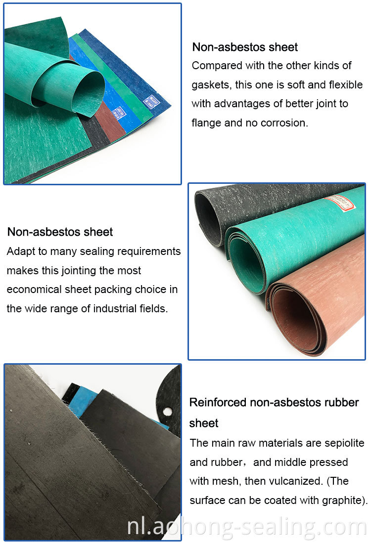 Wij bieden hoogwaardige asbestvoegende vellen, niet-asbest verbindingen en niet-asbest vezelvoegende vellen voor verschillende afdichtingsvereisten.