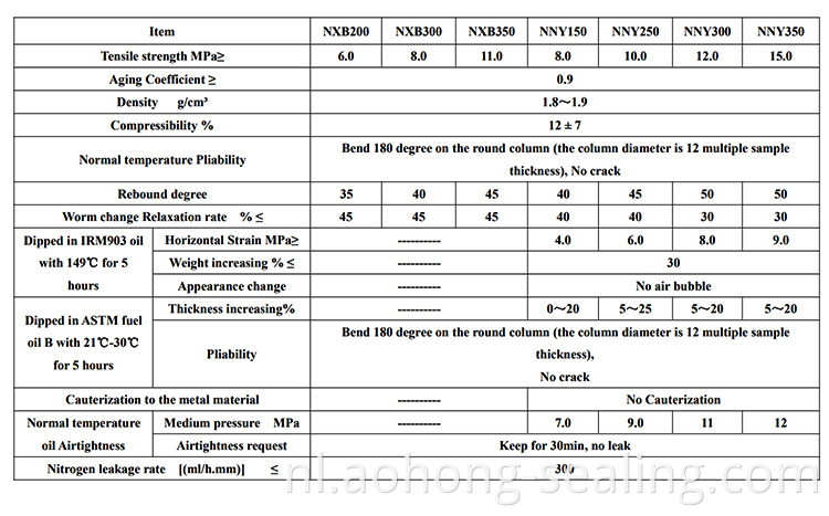 | Gecomprimeerde asbestvezel pakking dikte | 0,5 mm tot 6 mm dikte |