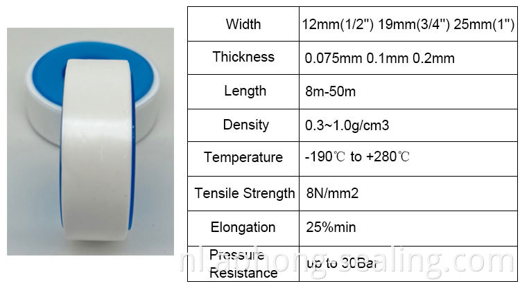 De PTFE -tape is gemaakt van PTFE, het is een soort hulpapparatuur die vaak wordt gebruikt in de installatie van vloeibare pijplijn. Het wordt gebruikt voor het aansluiten van de buisfitting om de strakheid van de pijpverbinding te verbeteren. Raw -tape is een nieuw en ideaal afdichtmateriaal. Vanwege zijn niet-toxische, smakeloze, uitstekende afdichting, isolatie, corrosieweerstand, wordt veel gebruikt in waterbehandeling, aardgas, chemisch, plastic, elektronische engineering en andere velden. Asbestvoegen, uitlaatpakkingmateriaal voor cilinder, pakkingplaat, geleideglas, klierverpakking, niveaumeter, niet-asbestvaardplaat, kwartsglas, zichtglas