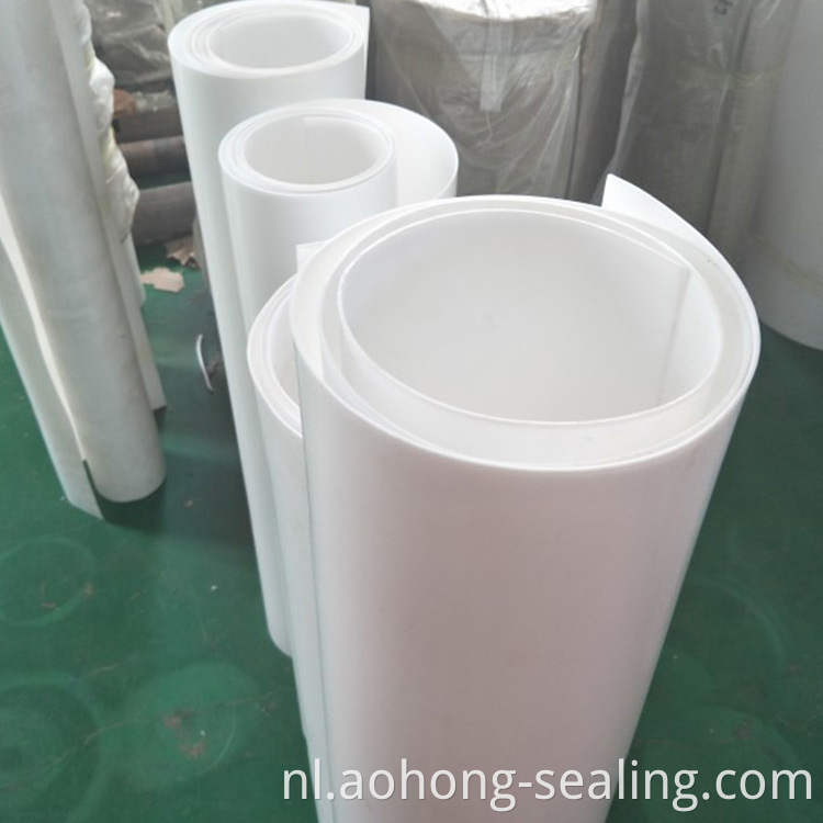 PTFE -plaat is gemaakt van pure PTFE door middel van gieten, draaien, snijden en andere verfijnde verwerkte. Het is van de sterkste chemische corrosieweerstand bij bekende kunststoffen. PTFE -blad is van toepassing in een breed temperatuurbereik van -180 tot 260 graden Celsius bij nulbelasting. Het wordt gebruikt in afdichtmaterialen zoals gewone pakkingen, V-vormige pakkingen en voeringen en smeermateriaal.